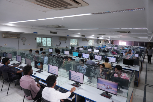 The Department has spacious classrooms, air-conditioned seminar halls, and a well-equipped laboratory. It has three dedicated fully air-conditioned computer lab with 300 systems, all in a networked environment with un-interrupted power supply. These systems have the most updated software and they run on various platforms such as Windows, Linux, Sun. The department offers free high-speed Internet facility through 1 Gbps JIO & 512 Mbps Airtel – 500Mbps Jio provider. The department has a dedicated server for E-mail, File Backup, DNS, DBMS and Linux. The lab is equipped with four 10KVA UPS and375KVA DG set as a standby. A Fortigate Firewall provides security for the system.